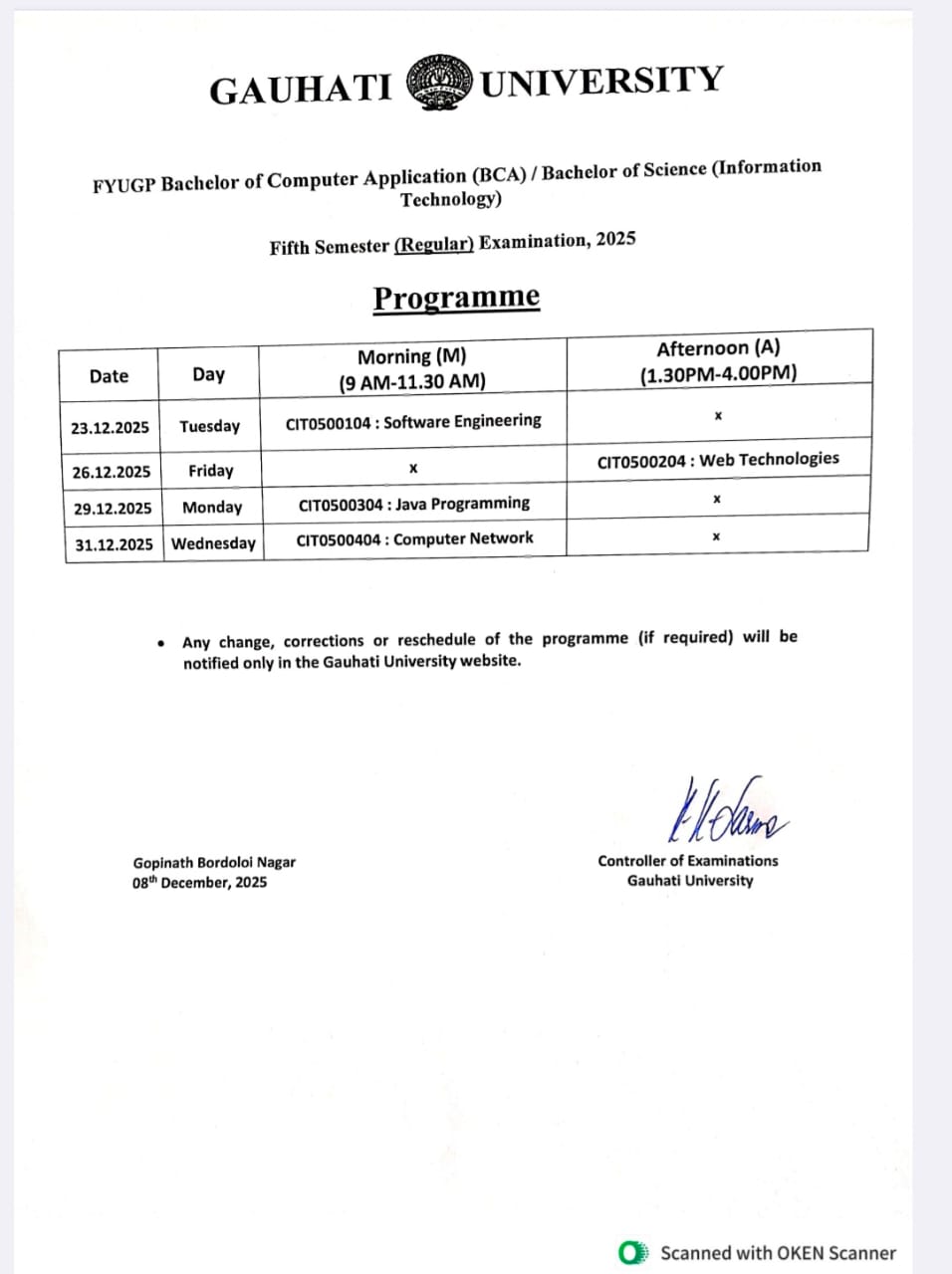 Examination Notices